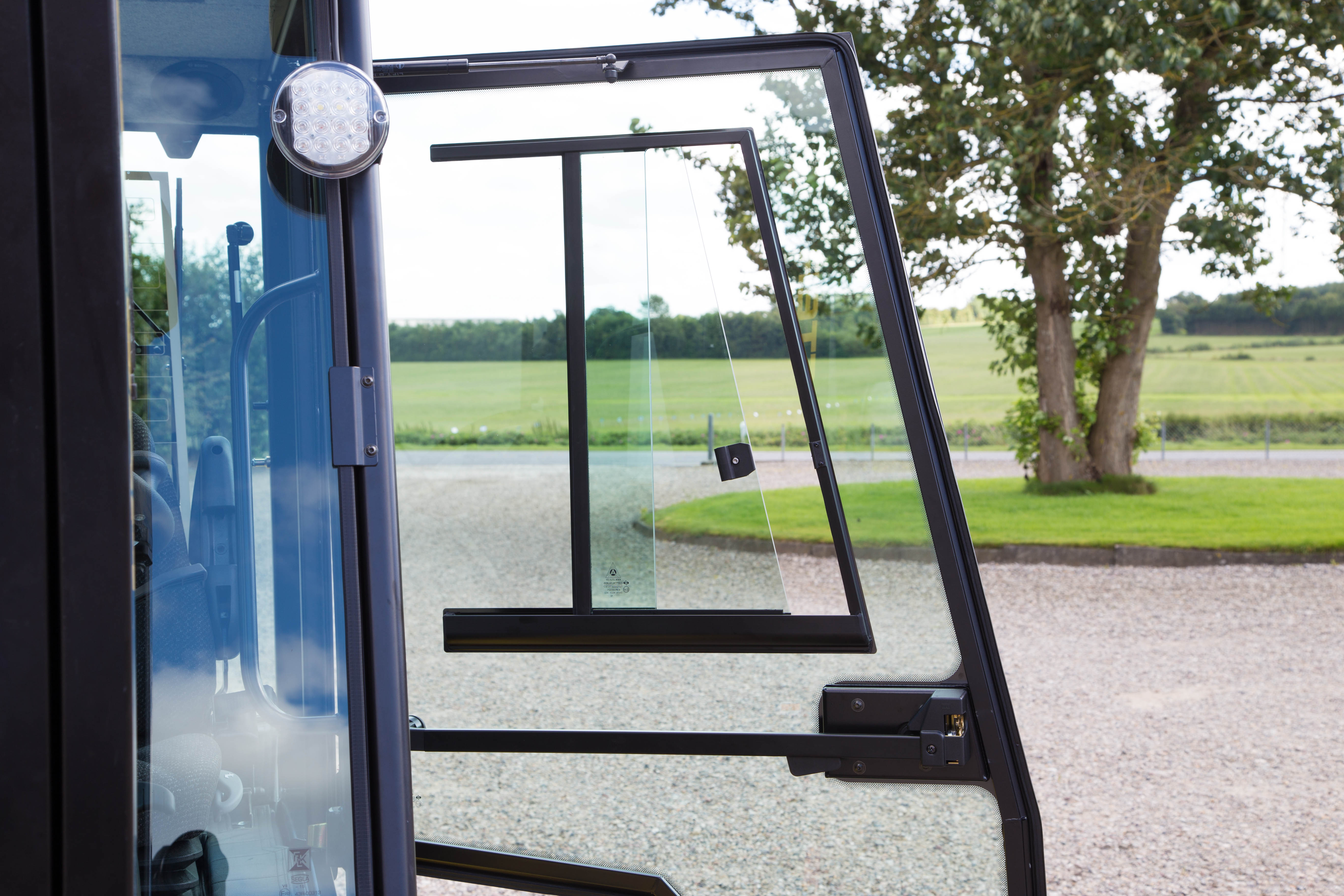 Derfor lægger vi vægt på at kabinen er tæt, så føreren kan holde varmen, og så ruderne ikke dugger. Udsynet skal være frit, og man skal ikke bukke sig ned for at se ud.